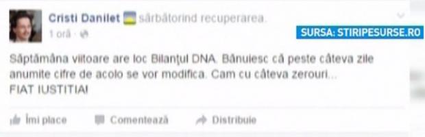 Magistratul a scris pe contul său de Facebook că săptămâna viitoare are loc bilanţul DNA şi că bănuieşte că peste câteva zile anumite cifre de acolo se vor modifica.