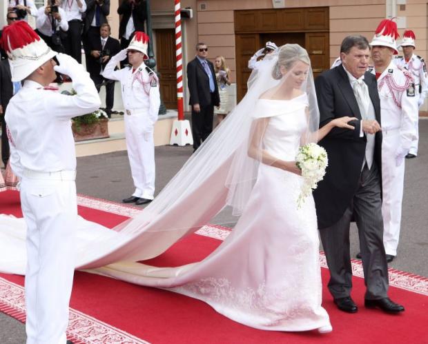 Prinţul s-a aşezat în faţa altarului plin de încredere. Nimic nu-i putea strica ziua perfectă, pentru care a plătit 80 de milioane de euro. Charlene a apărut la braţul tatălui său, însă, cu capul plecat.