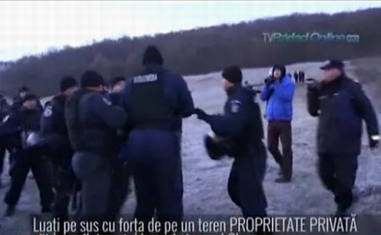 "În momentul în care jandarmii au ajuns în zona localităţii Siliştea, oamenii au ieşit în drum pentru a nu permite utilajelor Chevron să treacă prin zonă. Eu am reuşit să mă prind cu mâinile de bara de protecţie a unei maşini de Jandarmerie, moment în care am fost trasă şi târâtă de către jandarmi, după care am fost urcată într-o dubă de intervenţie. În acel timp, haina pe care o aveam pe mine mi-a venit pe ochi, astfel încât am simţit că mă sufoc. În consecinţă, am început să mă zbat puţin şi în acel moment presupun că am spart geamul de la duba Jadarmeriei", a declarat unul dintre liderii protestarilor de la Pungeşti, Zîna Domintean.