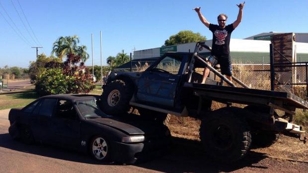 Aşa că şi-a luat camionul şi l-a urcat direct pe maşina prietenului său. Şi şi-a făcut şi poză, ca să nu existe dubii.