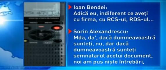 Potrivit referatului, în mai multe discuţii, Sorin Alexandrescu a afirmat că tema investigaţiei de presa NU este Bendei, ci compania RCS RDS.