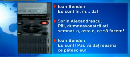 "Ioan Bendei şi-a pus un microfon la gât, undeva, şi tot încerca să scoată de la Sorin Alexandrescu o ameninţare la adresa lui, una personală. Şi se tot întâlneau", a declarat Mugur Ciuvică, la Antena 3.