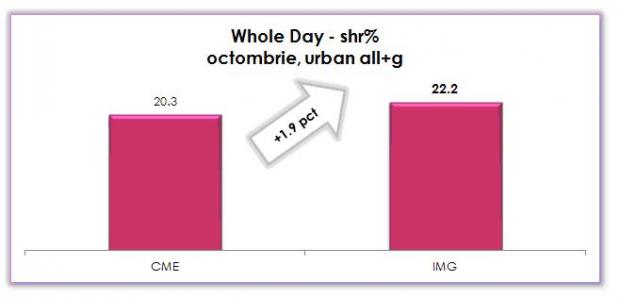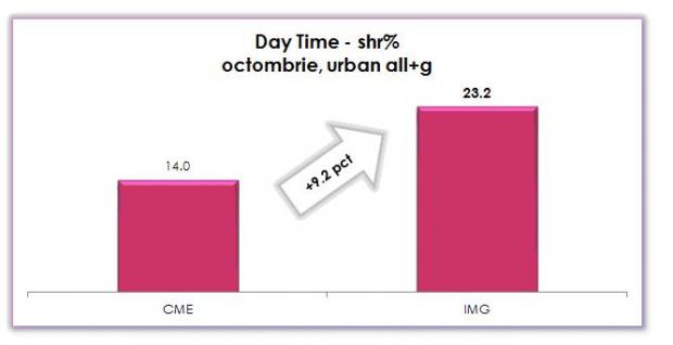 Media de audiență a show-urilor difuzate de Antene pe intervalul a 24 de ore situează posturile IMG pe primul loc, la diferență de 1,9 puncte de market share comparativ cu televiziunile CME. Cele mai spectaculoase emisiuni transmise de Antena 1, talk-show-urile Antenei 3, producțiile mondene ale Antenei 2, serialele și show-urile de entertainment ale Euforia și GSP TV sunt preferate de publicul din întreg mediul urban, conform datelor de audiență. X Factor, Next Star, Te cunosc de undeva!, Sinteza zilei sunt doar câteva dintre emisiunile aflate constant în preferințele telespectatorilor.