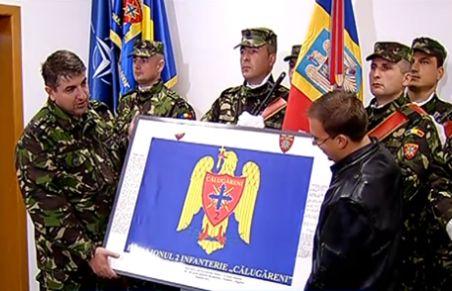 "E vorba de o simbioză între comandant şi simbolul suprem, drapelul. Această simbioză subliniază legătura dintre om, dintre cetăţeanul acelei ţări şi naţiunea, patria din care face parte", mărturisteşte col. Iulian Bărdilă, comandant Batalion 2 Infanterie Călugăreni.
