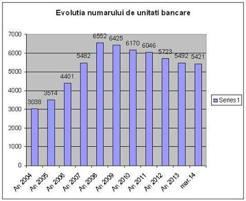 Si pe langa asta ar mai fi un “amanunt” de dezbatut. Desi in perioada 2008 – martie 2014 numarul lucratorilor bancari s-a diminuat cu 18,75%, numarul sucursalelor s-a micsorat cu 17,26% (6.552 – in 2008, fata de 5.421 in martie 2014). In situatia in care expansiunea unitatilor bancare in intervalul 2004 – 2008 a fost dubla in comparatie cu cea a numarului salariatilor (3.038 de sucursale – 2004). De altfel, la momentul actual, se observa un avans al numarului de unitati bancare de 78,4% fata de “baza” 2004, comparativ cu 17,5% la nivelul personalului.