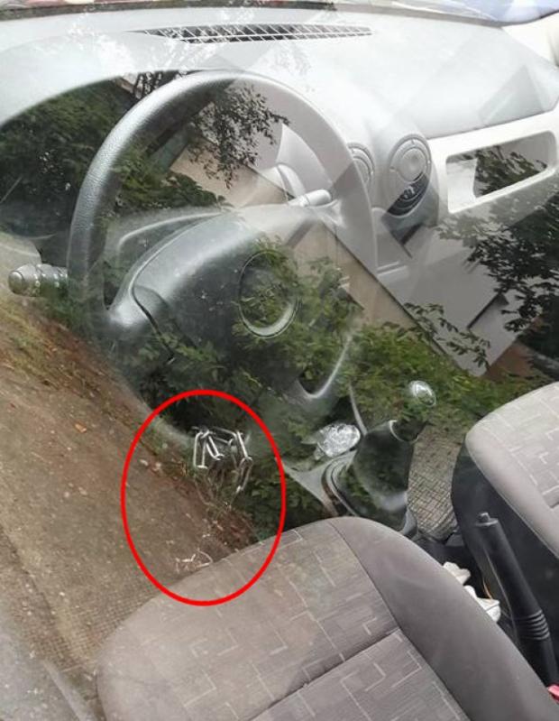Şoferul a cumpărat un lanţ lung şi gros de la feronerie şi are grijă să lege volanul în loc fix de fiecare dată când iese din maşină.