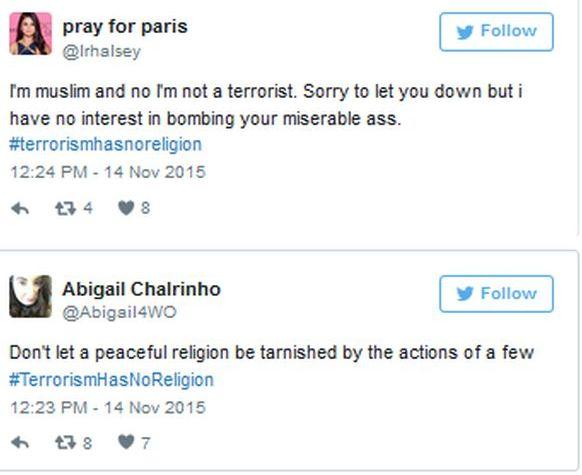 Mișcarea de pe Twitter vine ca urmare a unui val de reacții anti-musulmane apărute după atentatele din Paris.