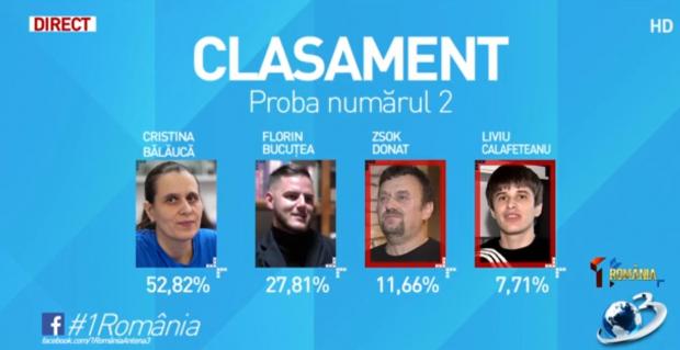 La finalul celor două teste, Zsok Donat și Liviu Calafeteanu au părăsit concursul. Au rămas în competiției Cristina Bălăucă și Florin Bucuțea.