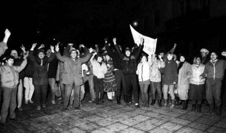 Piaţa Operei a fost ocupată de manifestanţi, iar din balconul Operei s-au auzit îndemnuri la acţiune împotriva dictaturii comuniste. Au apărut primii lideri ai manifestanţilor şi s-a conturat un program de revendicări. Mulţimea a atacat clădirea Comitetului judeţean PCR.