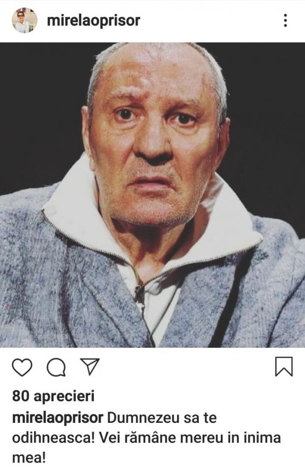 "Dumnezeu să te odihnească! Vei rămâne mereu în inima mea", a scris Mirela Oprișor.