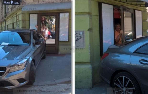 Șoferul unui Mercedes și-a parcat pur și simplu mașina pe trotuar, lângă trecerea de pietoni. În grija sa de a nu se afla pe trecere, acesta a uitat să lase un spațiu prin spatele mașinii. Până să realizeze isprava șoferului, mai mulți clienți ai unui local au rămas blocați în interior.