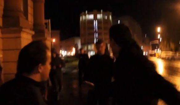 După ce "oamenii legii" şi-au dat seama că sunt filmaţi cu un telefon mobil, spiritele s-au inflamat şi mai tare, bruscându-l pe cel care îi înregistra.