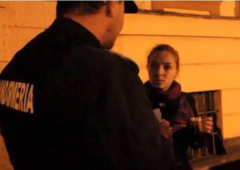 Câteva secunde mai târziu îşi face apariţia un al treilea jandarm, care începe să îi jignească pe tineri cum a ajuns la faţa locului. Imediat grupul pleacă, iar jandarmii aruncă cu o caserolă de mâncare înspre ei.