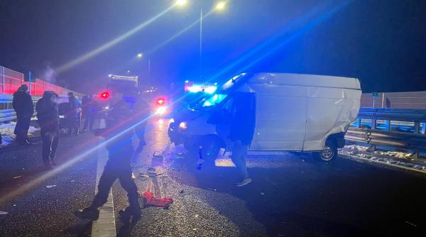 "Șoferul microbuzului a coborât din autovehicul și a observat cum un autoturism condus în urma sa a lovit parapetul, ricoșând spre locul în care se afla, moment în care, pentru a evita pericolul, a sărit între parapeții mediani ai autostrăzii, căzând în gol.