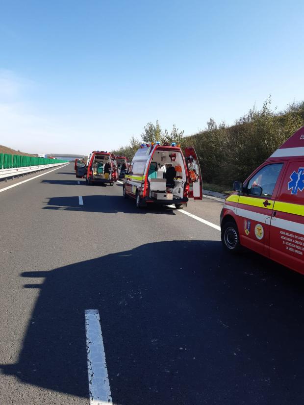 La faţa locului intervin 6 ambulanțe SMURD și un echipaj SAJ, un echipaj de descarcerare și o autospecială de stingere. Totodată, către locul intervenției se deplasează un elicopter SMURD.