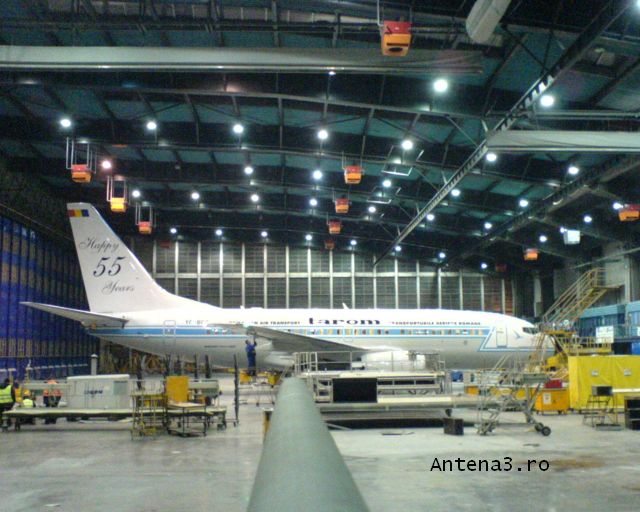 Deosebirile dintre schema actuală de vopsire şi cea din trecut se datorează noilor reglementări ale Uniunii Europene şi ale Autorităţii Aeronautice Civile Române. Antena3.ro vă prezintă, în exclusivitate, aeronava aniversară, fotografiată în hangarul TAROM.
