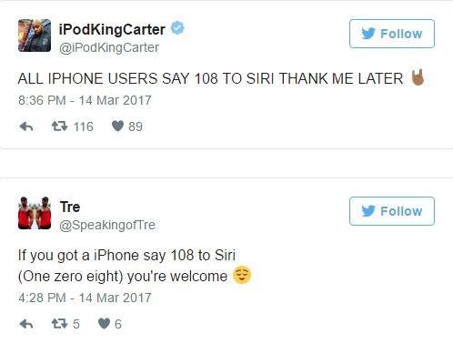 Mai mulți internauți îi provoacă pe utilizatorii de iPhone să spună către Siri numărul ”108”, sub pretextul că ”îmi vei mulțumi mai târziu pentru asta”, scrie Mirror.