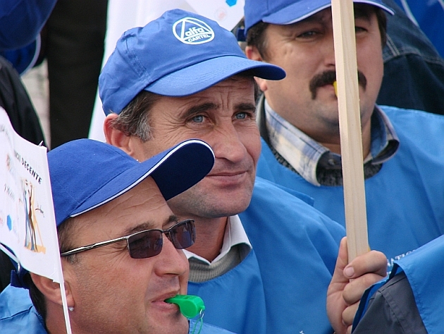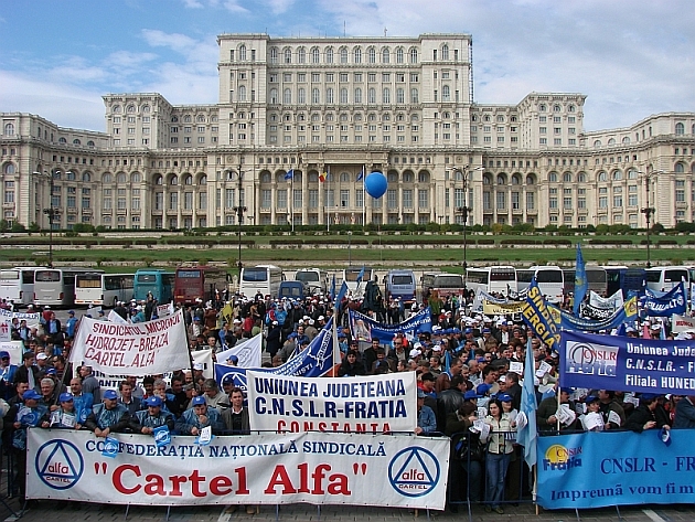 Aliniaţi şi dispuşi în careu, ca la începutul anului şcolar, sindicaliştii de la ?Cartel Alfa?, ?Blocul Naţional Sindical ? BNS?, CNSLR ?Frăţia? şi ?Confederaţia Sindicatelor Democratice din România ? CSDR? dau dovadă de o foarte bună organizare şi sunt receptivi la orice indicaţie din partea ?şefilor de clasă?. După 1-2 ore de pregătiri, timp în care manifestanţii s-au adunat, grupat şi înarmat cu şepci, veste şi steguleţe, liderii sindicali se adresează mulţimii: ?Hai să facem un tur în jurul acestui Ťminunatť Parlament?. Ghilimelele sunt imediat sesizate de cei prezenţi şi la fel de imediat sunt însoţite de un cor de fluierături. ?U-ni-ta-te! U-ni-ta-te!?, mai strigă ei, făcând referire la faptul că doresc aceleaşi drepturi băneşti ca şi cadrele didactice.