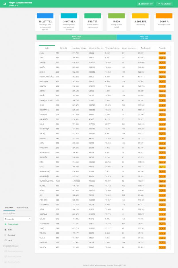 PREZENȚA în TIMP REAL la ALEGERILE EUROPARLAMENTARE