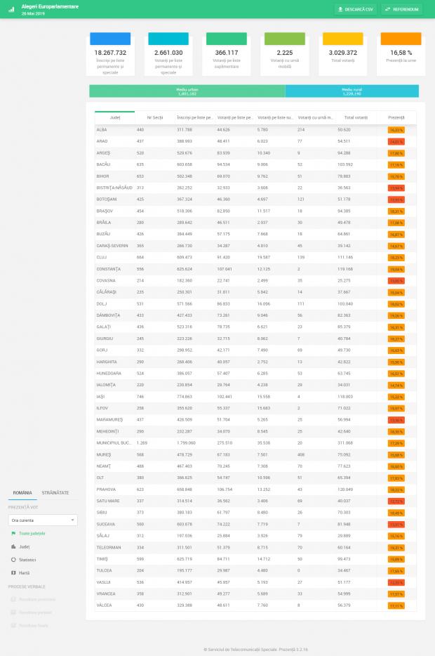 La ora 16.00, prezența la vot la alegerile europarlamentare era de 31.30%, iar la Referendum de 26.01%. Asta înseamnă că până la această oră votaseră 5.718.018 români , iar la Referendum, 4.170.978 români.