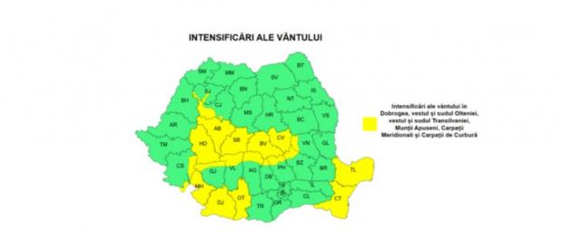 Alertă de vreme rea. ANM a emis un Cod galben de vânt, valabil în 20 de județe, și un Cod galben de ninsori la munte