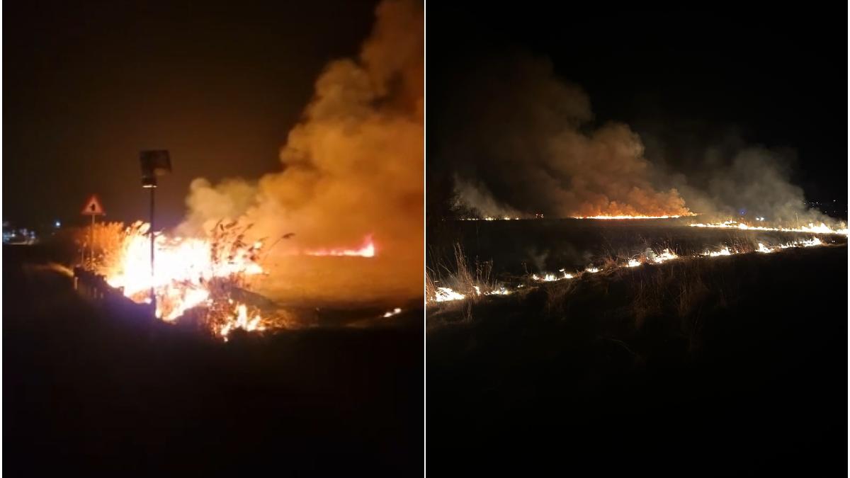 Un incendiu de stuf și vegetație care s-a extins pe circa 10 hectare a afectat o zonă greu accesibilă, în județul Mureș.