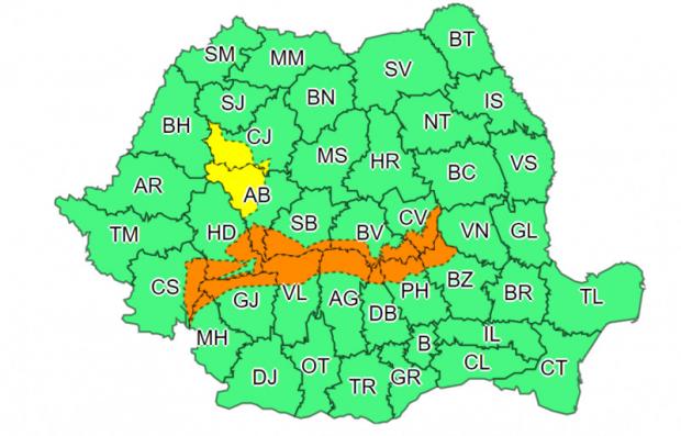 De la 05:00 dimineața și până la ora 10:00 va fi cod portocaliu de viscol puternic. La altitudini de peste 1700 m, în nordul Carpaților Orientali și în Munții Apuseni vântul va sufla tare, cu rafale de peste 100...120 km/h, va fi viscol puternic, zăpadă troienită și vizibilitate foarte scăzută.