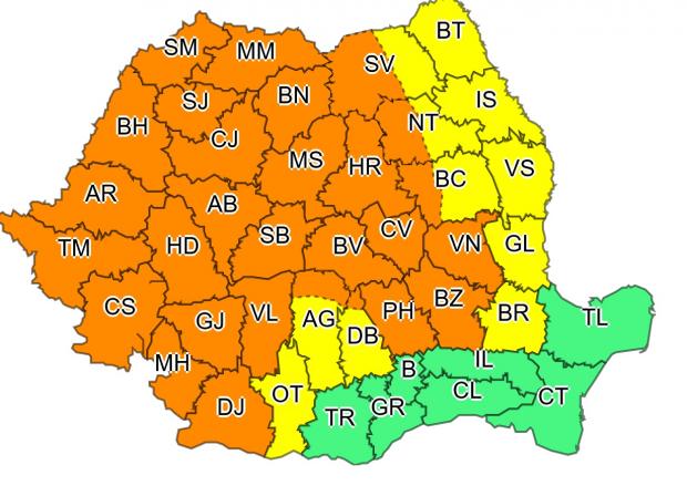 Vremea va fi instabilã. Vor fi înnorãri temporar accentuate, averse ce vor avea şi caracter torenţial, descãrcãri electrice, intensificãri de scurtã duratã ale vântului şi pe arii restrânse vijelii şi grindinã în jumãtatea de vest a teritoriului şi în zonele de deal şi de munte. Cantitãţile de apã vor depãşi local 20...40 l/mp şi izolat 50...70 l/mp. În extremitatea de est şi de sud-est a teritoriului, vremea va fi în general frumoasã, iar astfel de manifestãri vor fi pe arii restrânse. Temperaturile maxime se vor încadra între 20 de grade în Dealurile de Vest şi 31 de grade în sud-estul Munteniei. În zonele joase, dimineaţa, izolat se va semnala ceaţã.