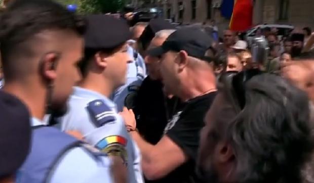 Protestatarii AUR au aruncat, de asemenea, cu sticle în forțele de ordine, ca răspuns la demersul oamenilor legii de a scoate din mulțime o persoană violentă.