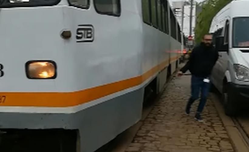 Asta a filmat vineri și un bucureștean, atunci când tramvaiul 36 a fost blocat din cauza unei dubițe de firmă parcată neregulamentar de un șofer.
