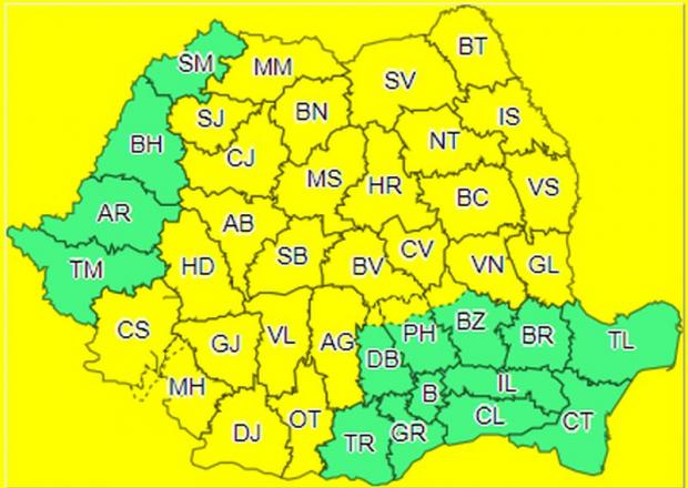 Temperaturile maxime vor fi de la 21 de grade în Maramureş, pânã la 34 de grade în sudul şi centrul Munteniei, unde disconfortul termic va fi ridicat, iar indicele temperaturã - umezealã (ITU) va atinge pragul critic de 80 de unitãţi.