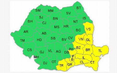 În intervalul menţionat, în Dobrogea, în sudul şi estul Munteniei şi în sudul Moldovei vântul va avea intensificări susţinute, cu rafale ce vor depăşi 60-70 km/h.