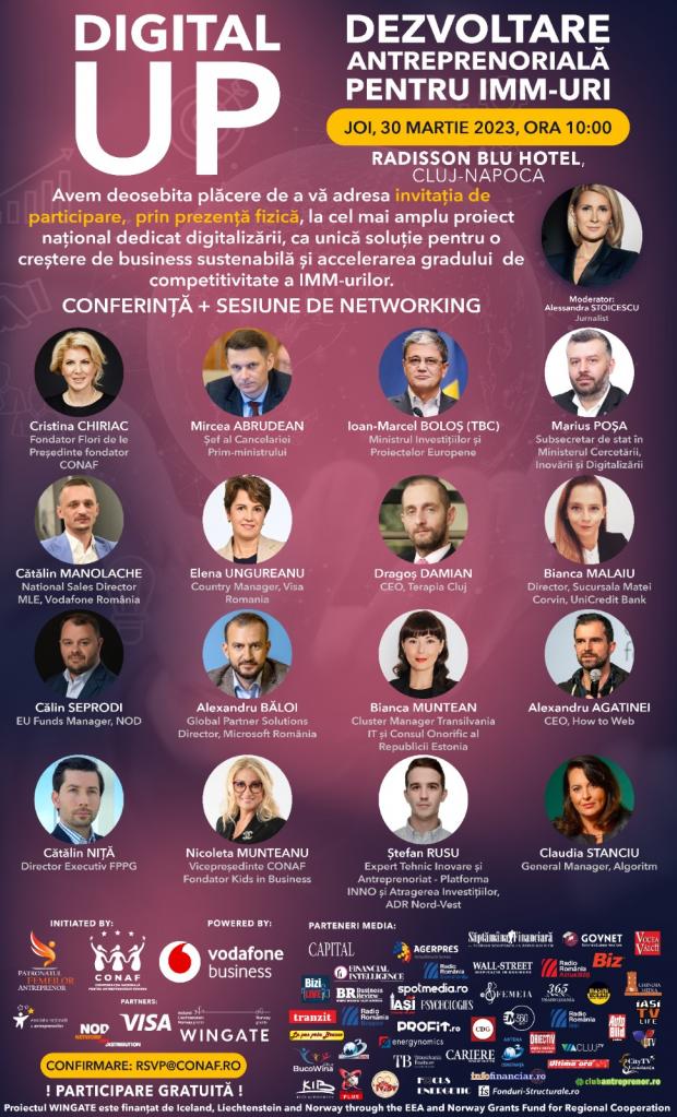 Cel mai amplu proiect naţional dedicat digitalizarii a ajuns la Cluj-Napoca. În cadrul evenimentului s-au căutat soluții pentru accelerarea gradului de competitivitate a IMM-urilor. Practic antreprenorii au stat faţă în faţă cu autorități, foruri decizionale şi companii.