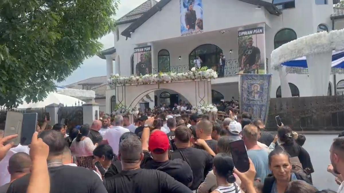 Apropiații interlopului Ciprian Pian au blocat strada la sosirea dricului. Florin Salam cântă, în timp ce sicriul e dus în casă