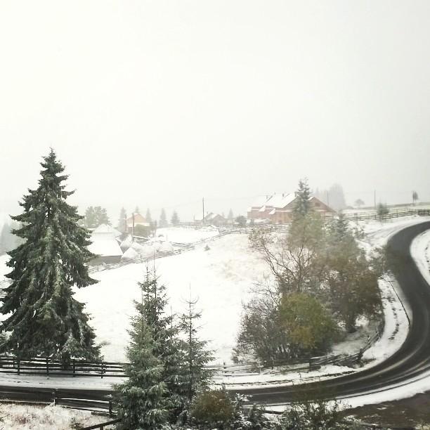 Și în stațiunea maramureșeană Șuior au căzut câțiva fulgi miercuri dimineață. Aici temperatura maximă nu va trece peste zi de 2 grade celsius.