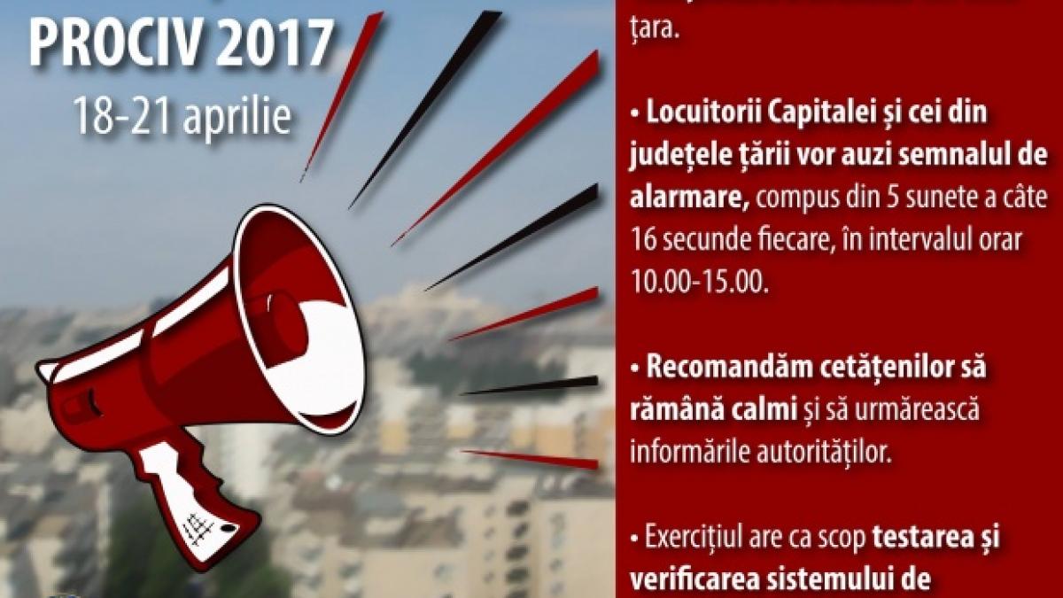 Potrivit Departamentului pentru Situaţii de Urgenţă, de-a lungul celor patru zile, sirenele vor suna alternativ, în Capitală și în județele țării.