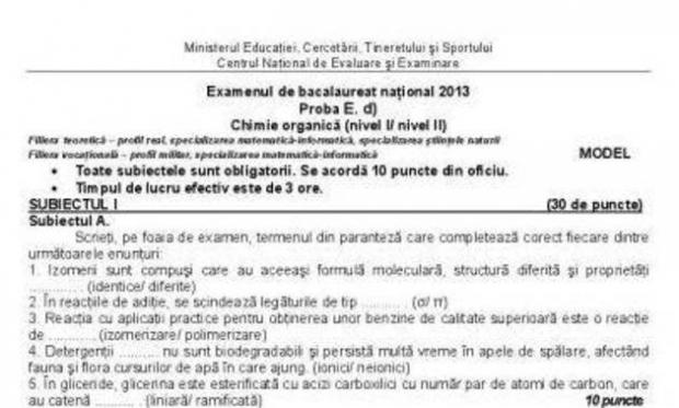 Candidații vor avea de rezolvat trei subiecte, fiecare notat cu câte 30 de puncte, iar 10 puncte se vor acorda din oficiu.
