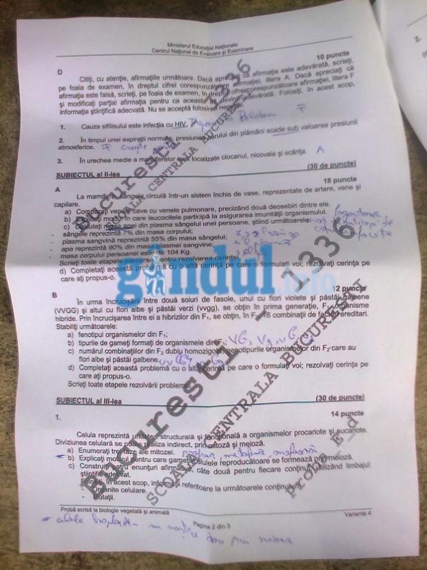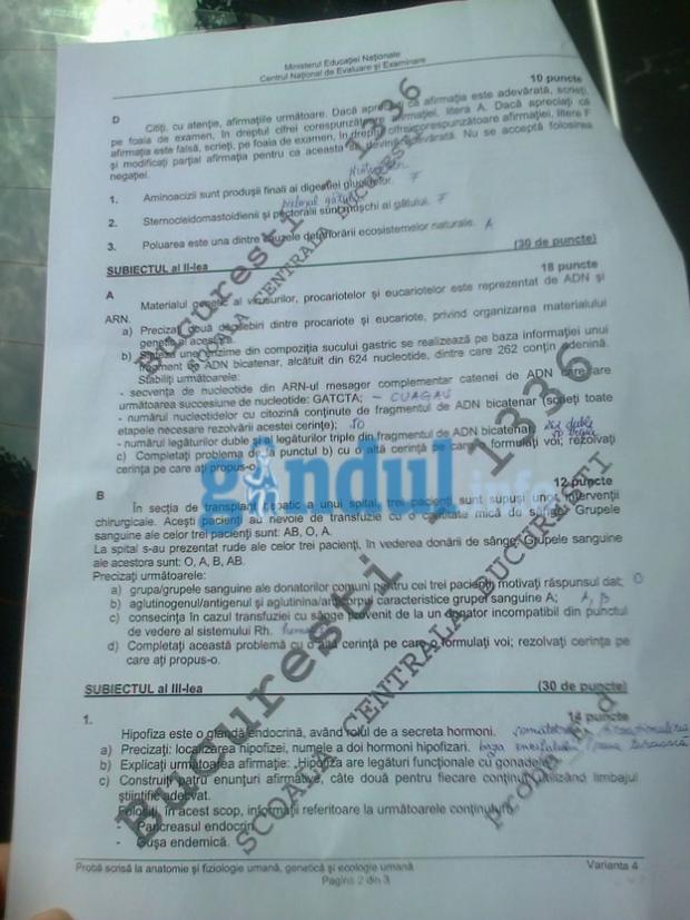 SUBIECTE BACALAUREAT 2014 BIOLOGIE