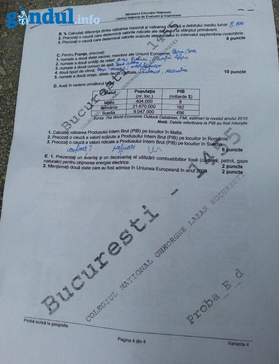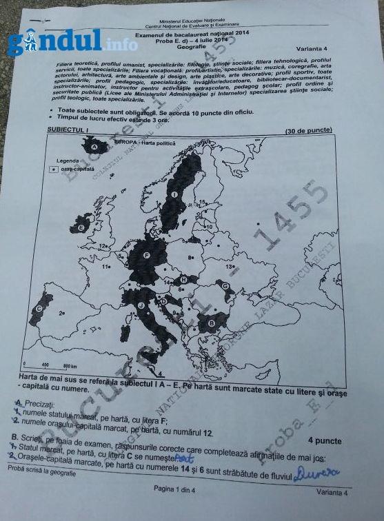 SUBIECTE BACALAUREAT 2014 GEOGRAFIE