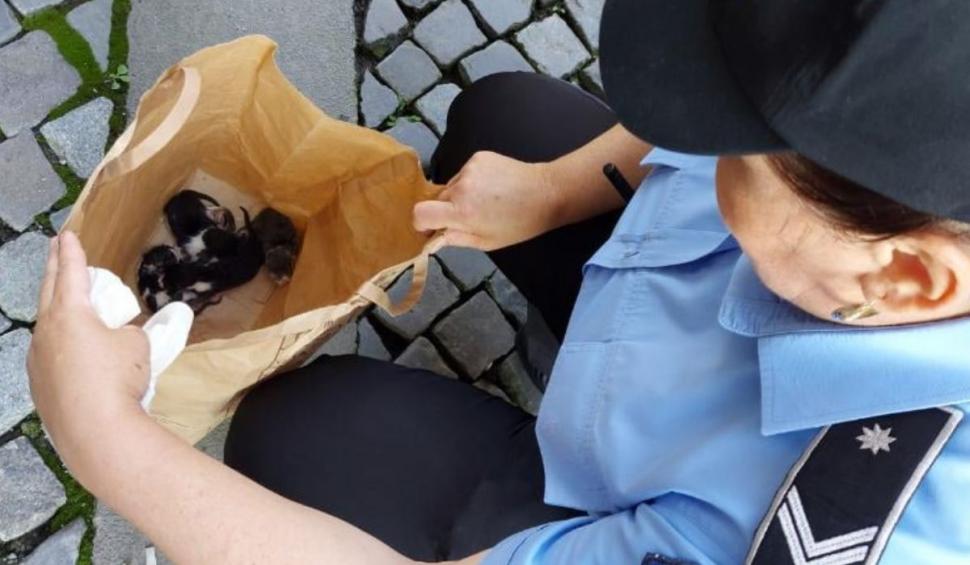 Comportamentul bărbatului a fost surprins de sistemul de monitorizare video gestionat de Poliţia Locală a Municipiului Bucureşti iar un echipaj, aflat pe itinerariul de patrulare, a fost trimis să facă verificări. La faţa locului, poliţiştii locali au descoperit că din sacoşa de hârtie răzbeau scâncetele a cinci pui de pisică, abia născuţi. Treamurau şi le era foame. Pisoii au fost recuperaţi, duşi la secţia de Poliţie Locală din Centrul Istoric şi hrăniţi cu pipeta. Apoi, după ce s-au întremat, au fost transportaţi, în siguranţă, la un centru specializat.