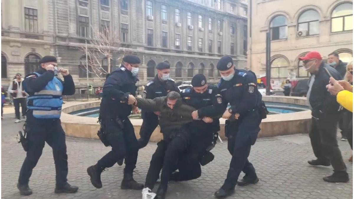 "În legătură cu imobilizarea unei persoane, în zona adunării publice din Piața Universității, Direcția Generală de Jandarmi a Municipiului București face următoarele precizări: