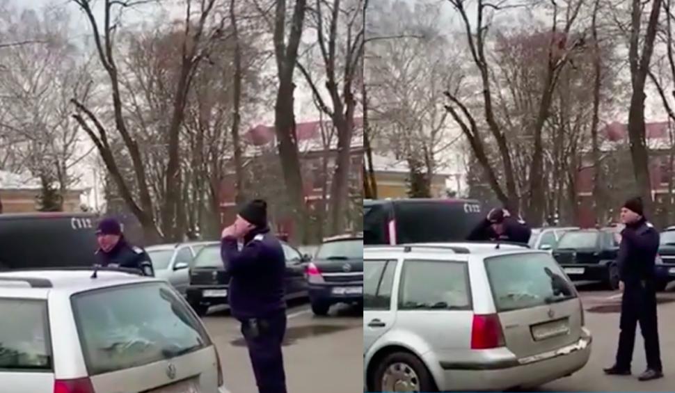 De altfel, niciunul dintre jadarmii care stăteau în faţa Judecătoriei din oraşul Român nu respectă măsurile de protecţie sanitară. Aceştia s-au enervat când omul respectiv i-a luat la întrebări și i-a rugat să respecte legea.