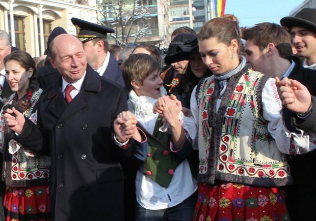 Spre deosebire de alţi ani, Traian Băsescu nu s-a lăsat prins foarte mult timp în tradiţionala horă din centrul Iaşiului. Cu toate acestea, şeful statului a avut-o la braţ preţ de câteva minute pe una dintre cele mai populare dansatoare de la Ansamblul folcloric "Busuioc Moldovenesc". Este vorba despre Maria Astefăniţei, o moldoveancă blondă care a reuşit să se "agaţe" de şeful statului în fiecare an, din 2007 încoace.
