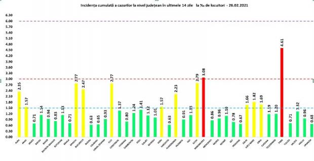 Bilanţ coronavirus în România, 26 februarie 2021. 968 de bolnavi, la ATI