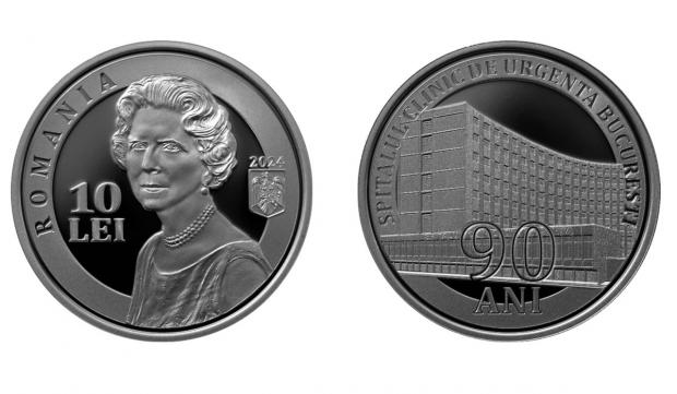 Reversul monedei de argint prezintă impresionanta Clădire a Spitalului Clinic de Urgență București, alături de inscripțiile "Spital Clinic de Urgență București” și "90 ani”.