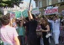 Cetăţenii iranieni au vrut iniţial să protesteze în faţa Ambasadei Iranului, însă nu au primit autorizaţie. Nu au renunţat şi s-au adunat la doar câteva sute de metri distanţă de imobilul diplomatic.