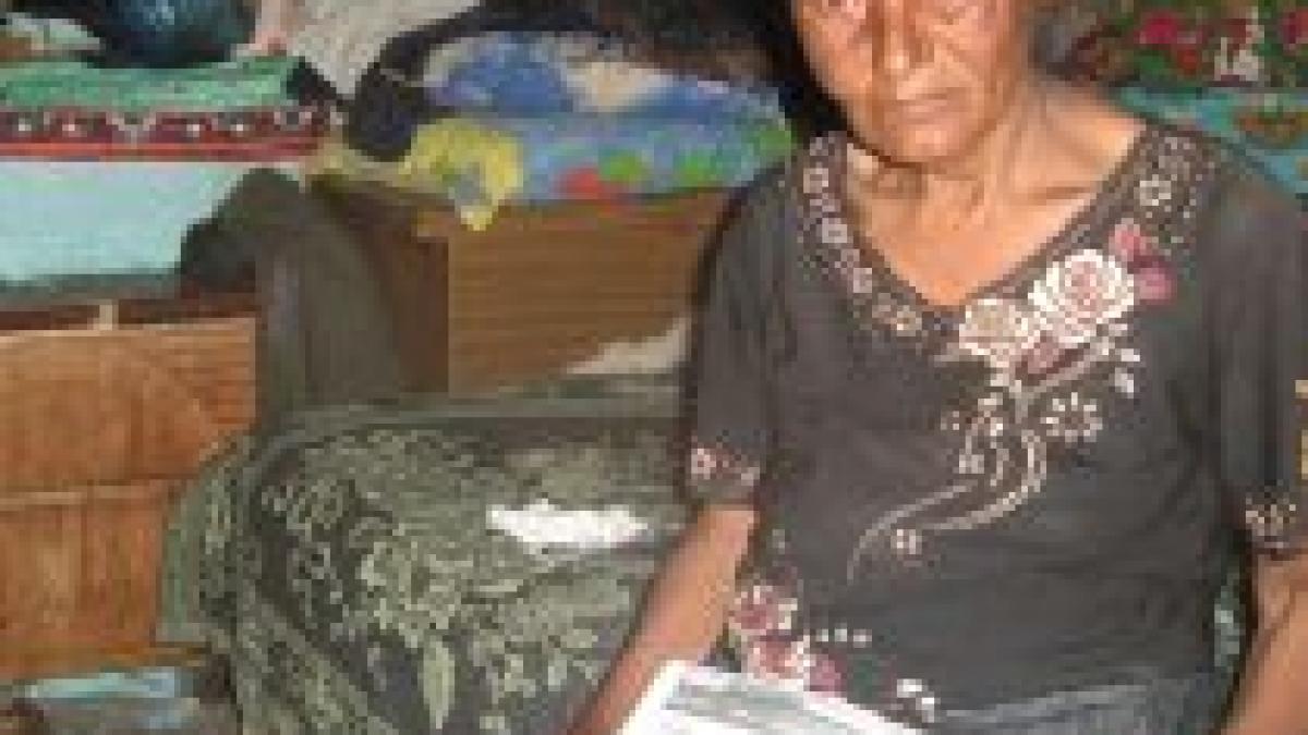 Are 64 de ani, iar de peste 20 de ani singurul ei sprijin vine din partea copiilor, doi băieţi şi o fată. Mai primeşte şi de la stat un ajutor social de 100 de lei, care abia îi ajunge să îşi cumpere medicamente pentru stomac. ?De unde să am bani să îmi construiesc o altă casă? Ce vină am eu că nu am unde să muncesc??, se întreabă ea.
