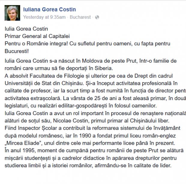 Iuliana Gorea Costin, o româncă născută în Republica Moldova, fost ambasador la Consiliul Europei, va candida la alegerile locale din România pentru funcția de Primar General al Bucurestiului.