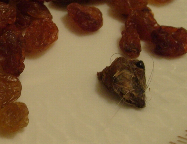 Cap de şoarece, descoperit într-o punguţă cu stafide (VIDEO)