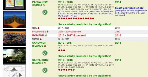 Experţii americani se bazează pe algoritmi matematici care iau în calcul mişcările seismice anterioare, pe site fiind afişate şi seismele care au confirmat predicţiile.